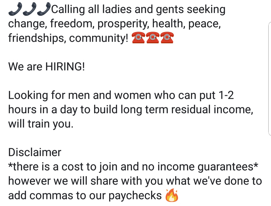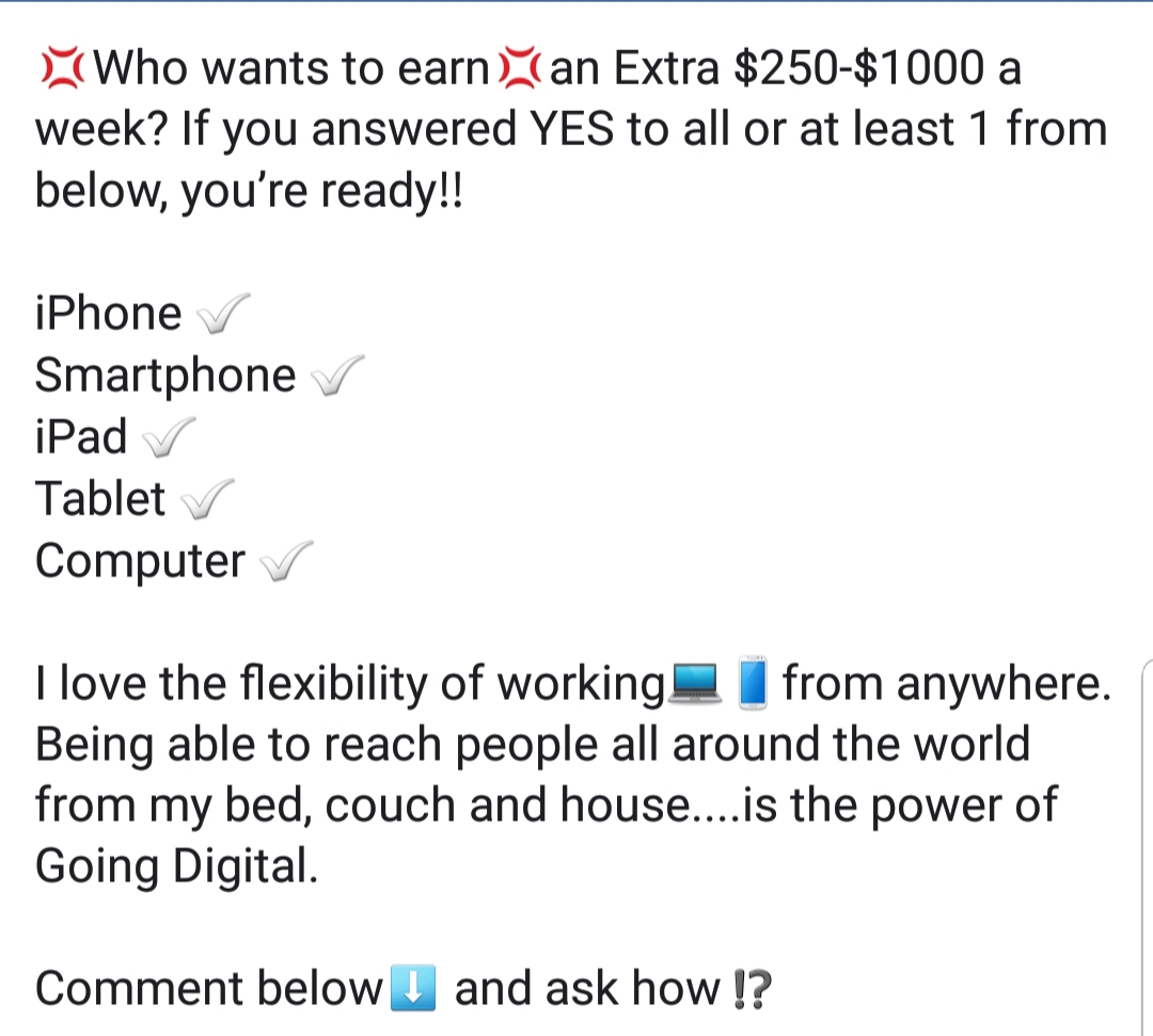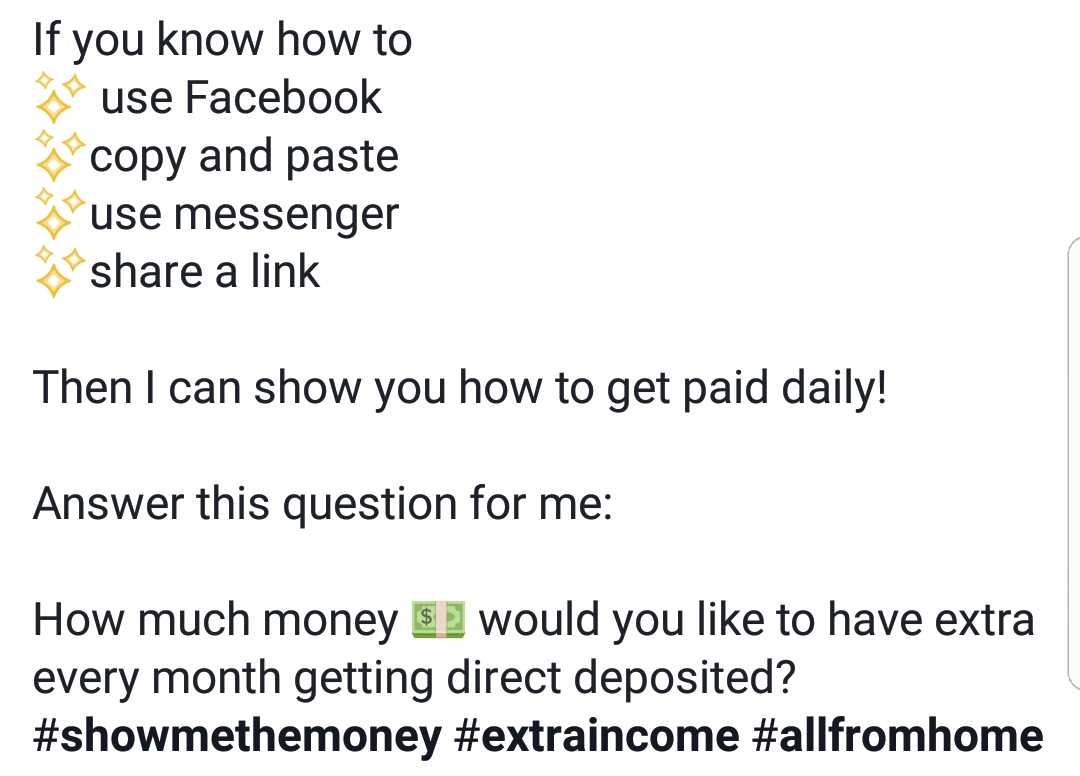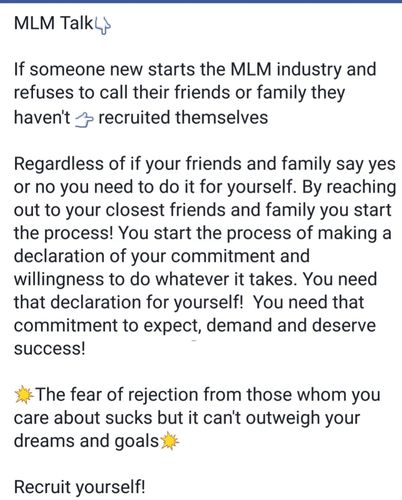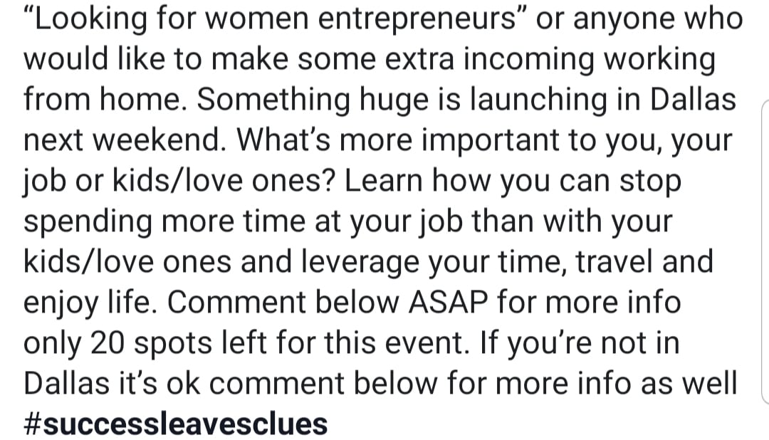 By keeping posts generic, you can focus on pain points and desires (extra income, flexibility, wellness, etc.) that your ideal business partners are already thinking about. This helps attract people who resonate with your vision—not just the product.